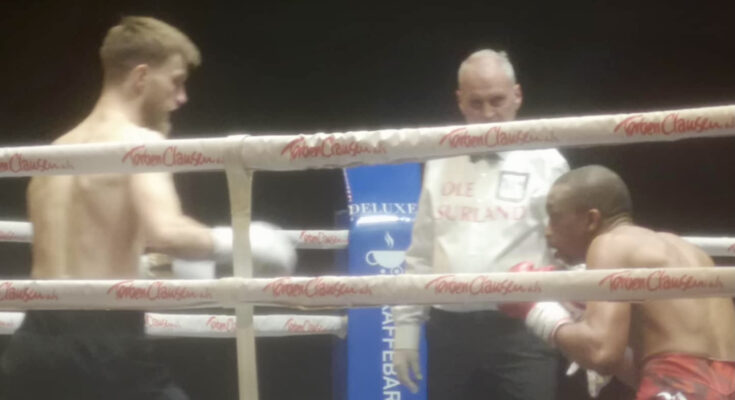 Frederik Lundgaard (nu 2-0) udnyttede fra starten udmærket sin rækkevidde og bevægelighed mod David Rajuili (nu 13-16-1) fra Sydafrika. Rajuili prøvede rutineret at komme tæt på, men Lundgaard kom ofte fint rundt om sydafrikaneren og landede sine kontraer.