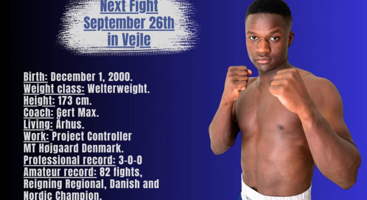 24-årige Mbilizi profdebuterede i Randers i oktober sidste år. Han har vundet alle sine tre profsejre på points. Hans modstander i Vejle er endnu ikke offentliggjort.
