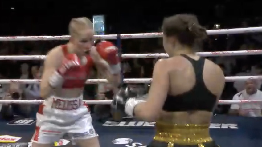 Melissa Mortensen (nu 9-0) og Tori-Ellis Willetts (nu 7-2), England, startede med teknisk boksning, hvor de så hinanden an. Men Willetts fik hurtigt så meget respekt, at hun holdt, når de kom på halvdistancen.