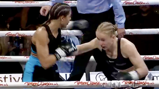 Midt i 5. omgang blev Garganese ramt af en dyb venstre og et højt hook, og hun havde ikke lyst mere. Kampleder Freddy Rafn stoppede hende efter 19 sekunder af omgangen.