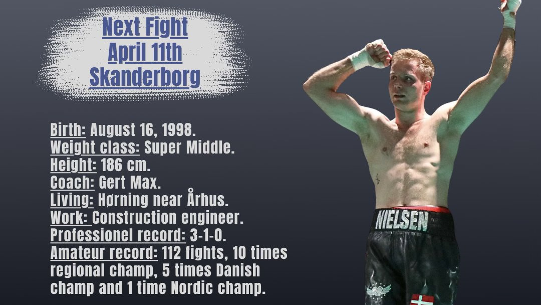 Ikke uventet er supermellemvægteren Nikki Møller Nielsen (3-1) bekræftet på programmet, når Danish Boxing Promotion holder stævne i Skanderborg Kulturhus den 11. april.