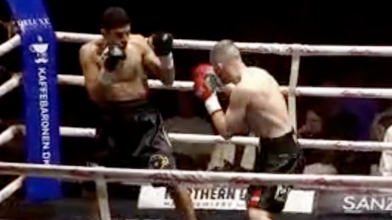 Ukraineren har flere gange held med sin direkte højre, men han havde ikke helt timingen. Lige da klokken lød for 2. omgang, fik han dog en højre ind, der sendte Al MAliki på halen, og kampleder Jan Christensen valgte at tælle.