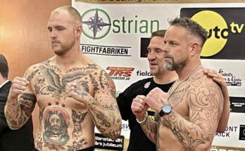 Thorbjørn Boudigaard (7-2) og hans svenske modstander Joel Larsson (4-0-1) er vejet ind og klar til deres kamp i sværvægt lørdag aften. Boudigaard vejede 106,9 kg (235,7 pounds), Larsson vejede …