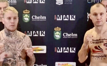 Kim Poulsen (32-9) og hans polske modstander Rafal Wolczecki (15-0) er i dag i Chelm, Polen, vejet ind til deres kamp lørdag. Wolczecki vejede 77,3 kg (170,4 pounds), mens Poulsen …