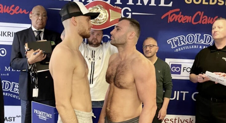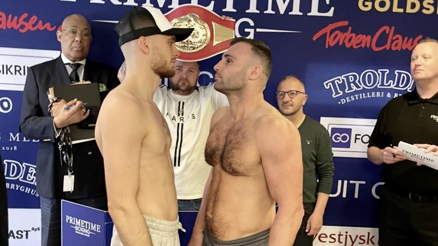 Elias Idrissi, Oliver Zaren og stævnets øvrige profboksere er vejet ind til lørdagens pro-am Herlev Fight Night i Herlev Hallen. I begge titelkampe kneb kombattanterne sig lige under vægtgænsen. Her er boksernes vægte: